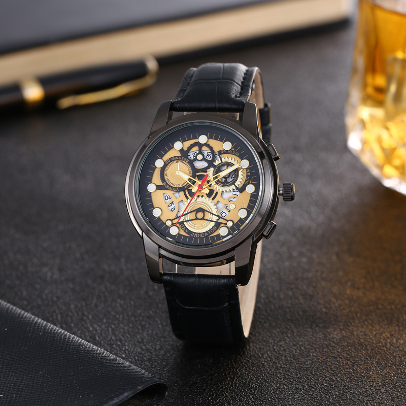 外国貿易カジュアル透かし彫りwish腕時計起爆新品カレンダー男性ビジネスクォーツ時計セットメーカー卸売り