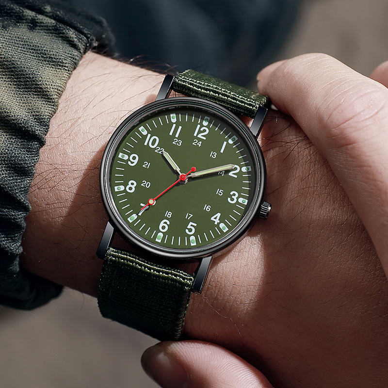 時計発光アウトドアスポーツキャンバスストラップ時計外国貿易メンズ織ストラップクォーツ時計ダイヤル発光