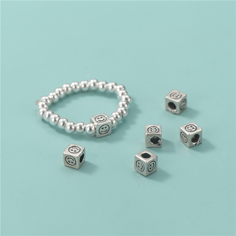 S925純銀泰銀ミニ笑顔隔珠散珠指輪チェーン部品diyビーズ編みブレスレット材料バッグ