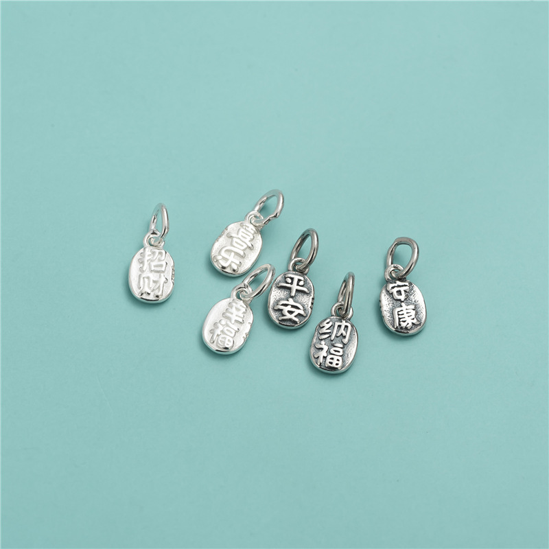 S925純銀小吊り札平安喜楽幸福安康ストラップDIY編み縄ブレスレットペンダントアクセサリー