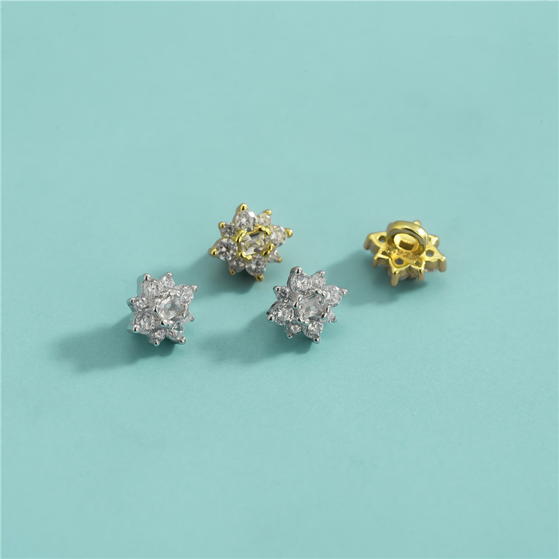 S 925純銀はジルコンの小さい花のボタンを入れます。