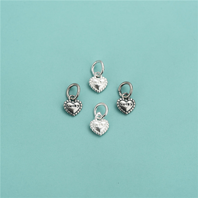 S925純銀ミニ桃心ペンダント幸運luckyペンダントDIY手作りひもブレスレットネックレス愛のアクセサリー