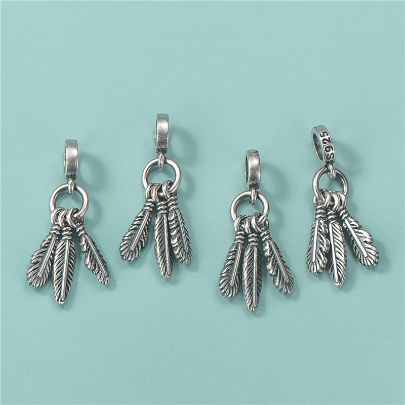 S925純銀泰銀羽流蘇ペンダントアクセサリーブレスレットネックレスペンダントdiy手作りロープアクセサリー材料
