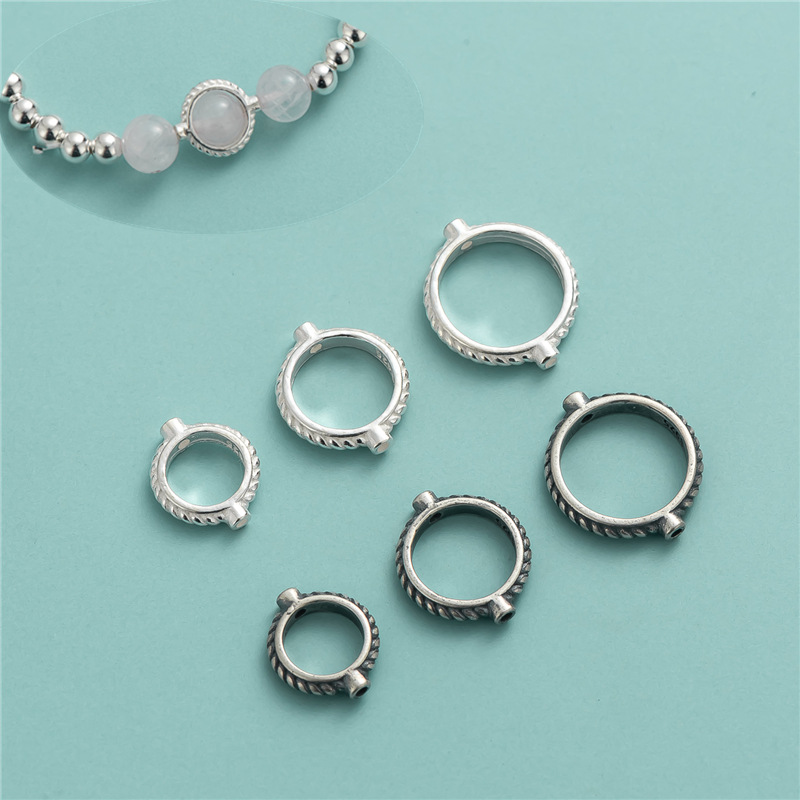 S925純銀円形ビーズ枠ビーズの中間にビーズを入れることができます。