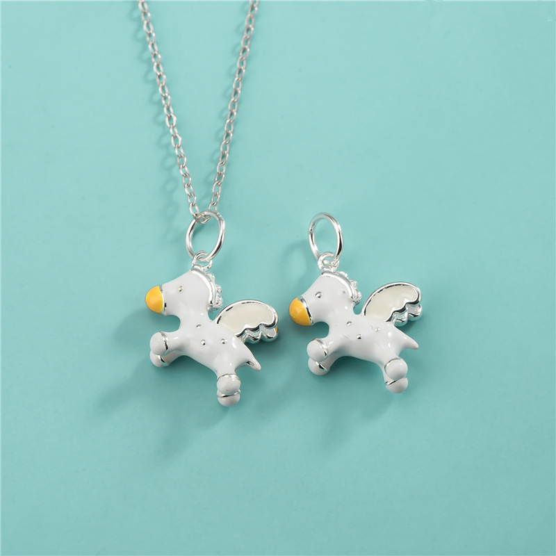 S925 スターリングシルバー韓国スタイル ins スタイルアクセサリー接着剤白馬ペンダント DIY クリスタルブレスレット小さなペガサスペンダント