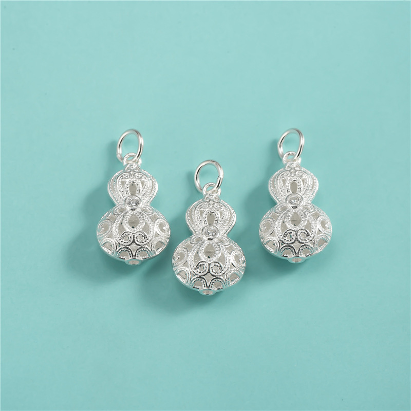 S925 スターリングシルバー電気メッキ中空パターンひょうたんペンダント DIY 編組ロープブレスレットクリスタルブレスレットネックレスひょうたんペンダント