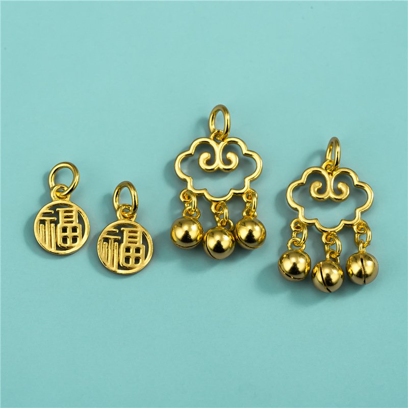 S925 スターリングシルバー電気メッキゴールド祥雲ベルペンダント祝福ペンダント DIY クリスタル翡翠ブレスレットアクセサリー