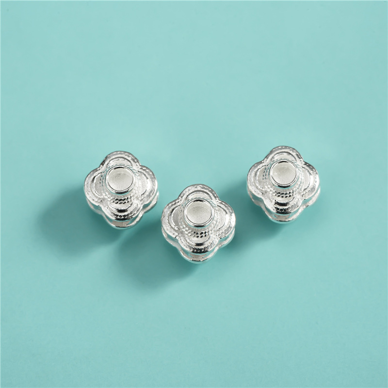 S925 スターリングシルバー小さな花ビーズ小さな花ホイールビーズルースビーズフラットビーズ DIY クリスタルブレスレットブレスレットスペーサーアクセサリー