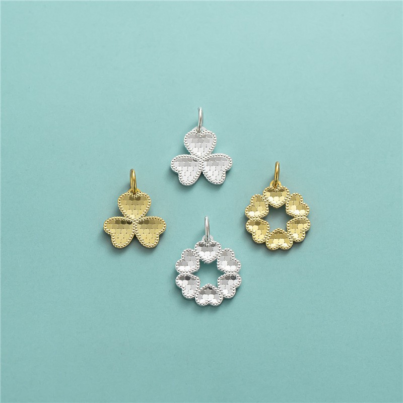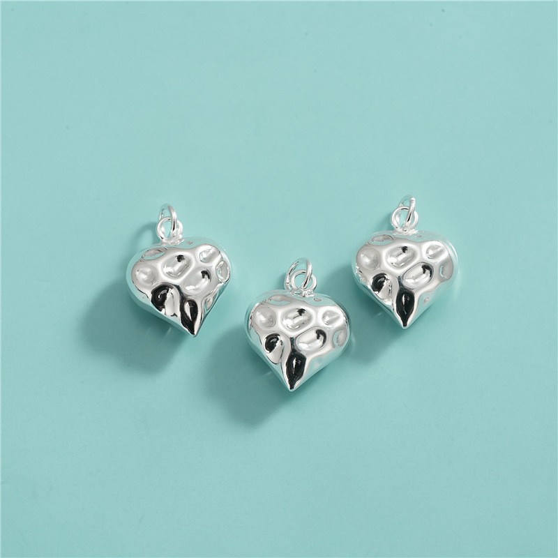 S925 スターリングシルバー韓国スタイル ins スタイルアクセサリーテクスチャラブペンダント DIY クリスタルブレスレットネックレスピーチハートペンダント