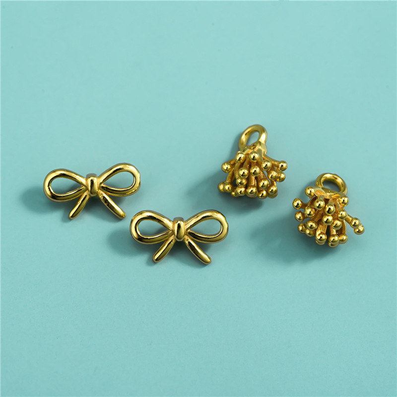 S925 スターリングシルバー電気メッキゴールド花火ペンダント弓ビーズ DIY クリスタルブレスレットビーズアクセサリー