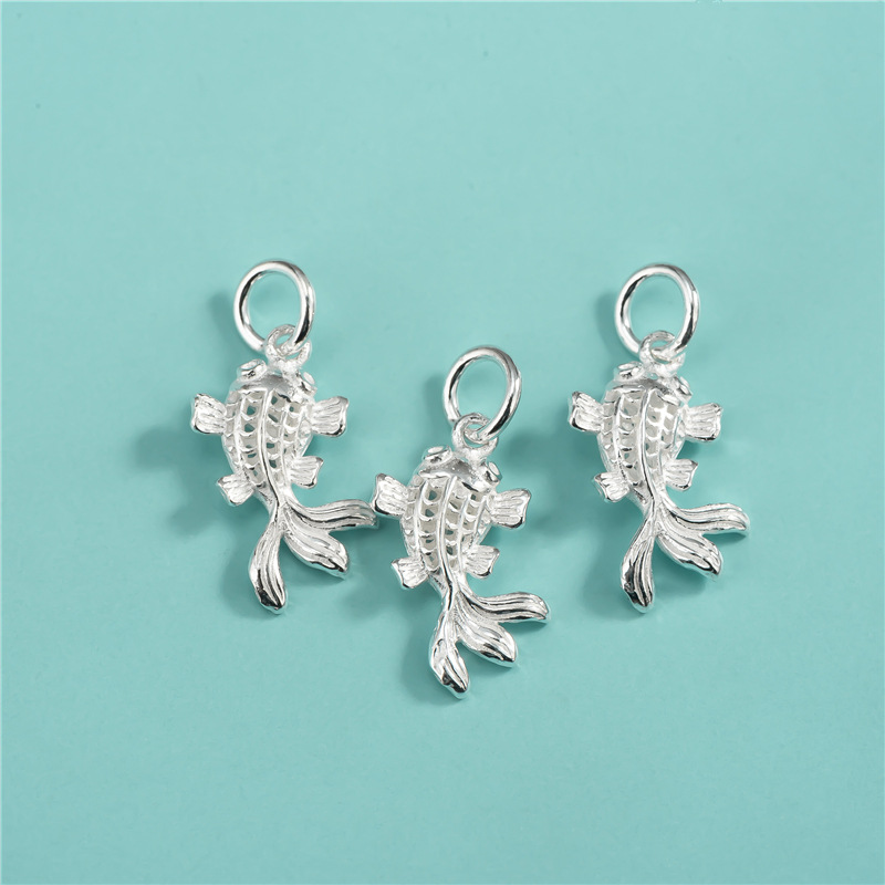 S925純銀素銀錦鯉ペンダント小魚ペンダントDIY手作りビーズ真珠水晶ブレスレットペンダント