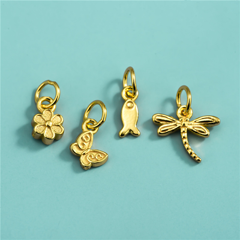 S925 スターリングシルバー電気メッキアクセサリー小さな花と魚のペンダント小さなトンボ蝶ペンダント DIY クリスタルブレスレットシングルペンダント
