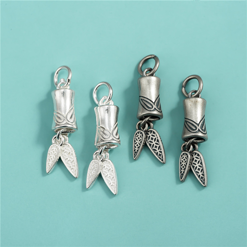 S925純銀レトロ中国風竹節ペンダント竹の葉ペンダント節高昇ブレスレットペンダント部品