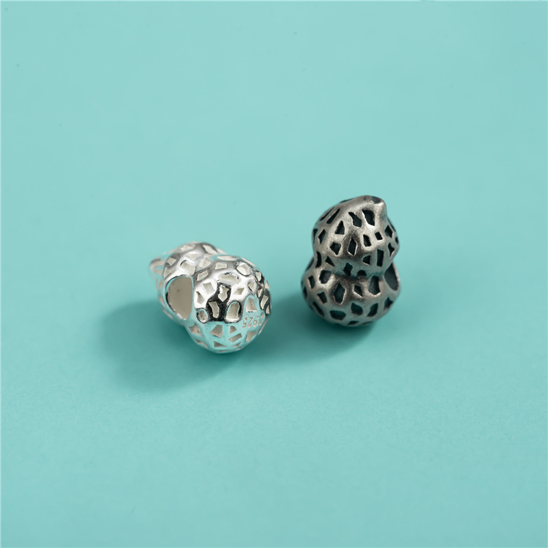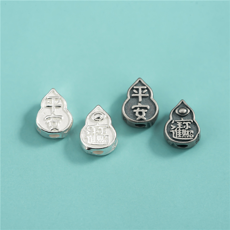 S925純銀招財進宝平安瓢箪隔珠四穴散珠DIY編み縄手串水晶ブレスレット部品