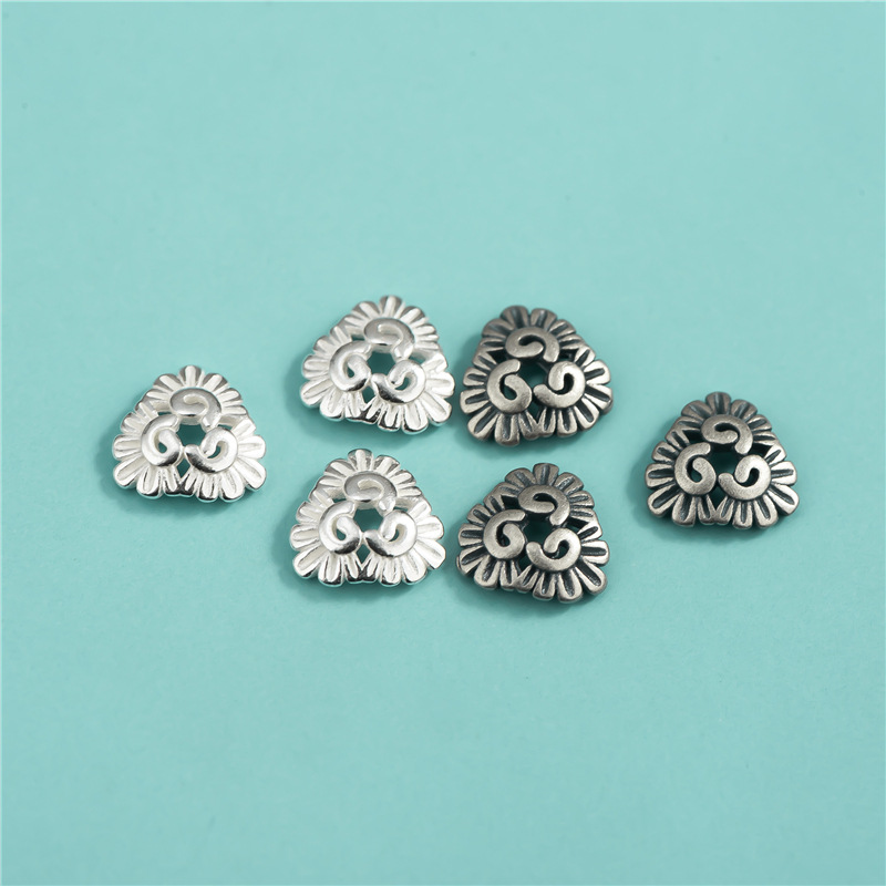 S925純銀花托螺旋紋三角花托真珠水晶珠托DIY手串ブレスレットスペーサー