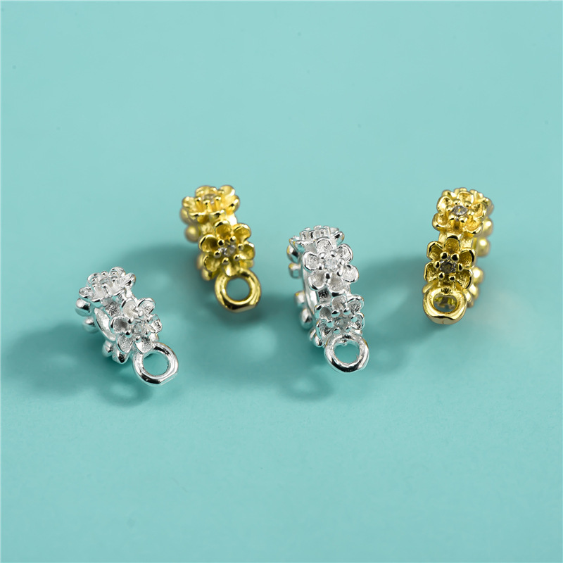 925 スターリングシルバー電気メッキダイヤモンドアクセサリー小さなフラワービーズルースビーズ DIY 手作りビーズクリスタルブレスレットコネクタ