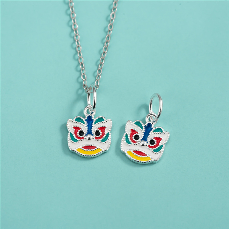 新しい中国風の獅子舞ペンダント S925 スターリングシルバー接着剤カラフルなライオンペンダント DIY クリスタルブレスレットペンダントアクセサリー
