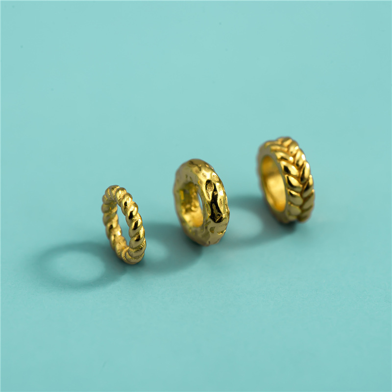 S925 スターリングシルバー電気メッキゴールドカラーパイプ巻きビーズツイストサークル小麦穂リングスペーサー DIY クリスタルブレスレットスペーサー