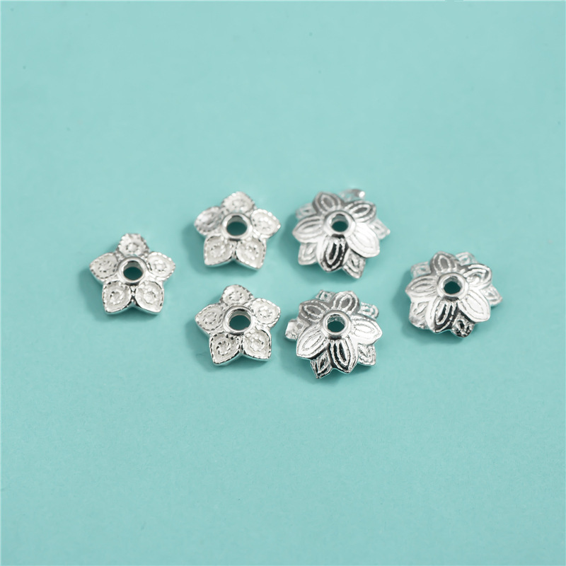S 925純銀素銀花托5mm五弁花スペーサービーズ