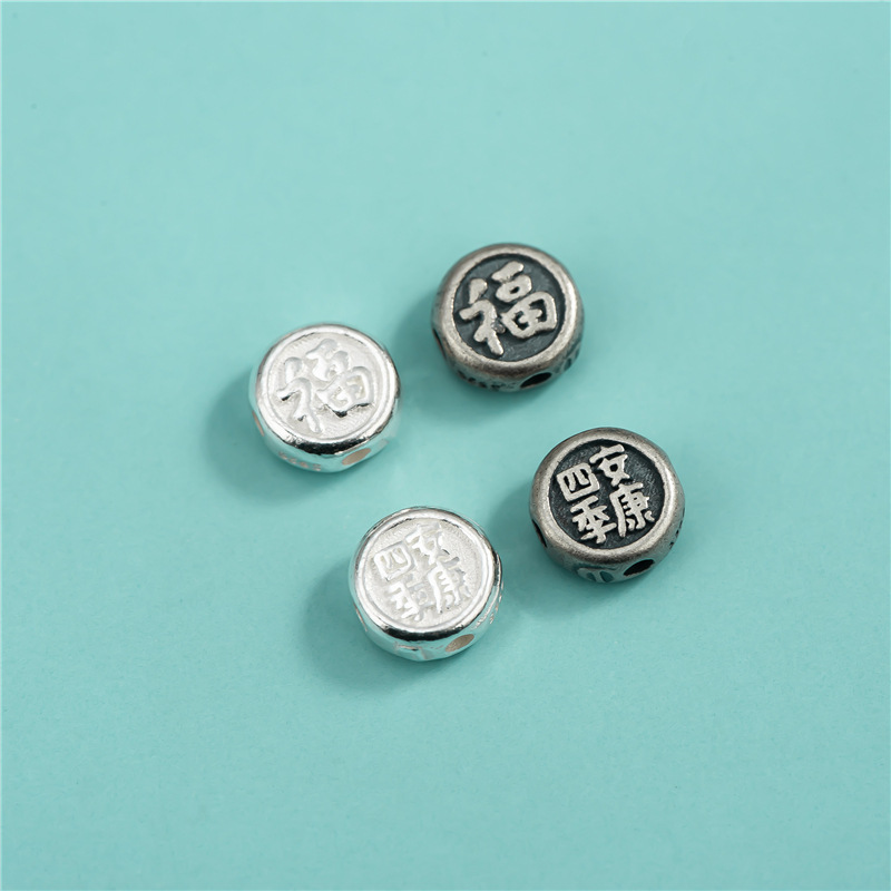 S925 スターリングシルバーブレスレットアクセサリー四季健康と幸福ビーズ 4 穴フラットビーズ DIY クリスタルブレスレットブレスレットルースビーズ