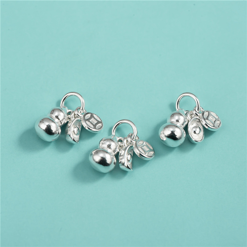 新中国式ヒョウタンペンダントS925純銀中実ヒョウタンペンダントDIY手作り編み紐水晶ブレスレットペンダント