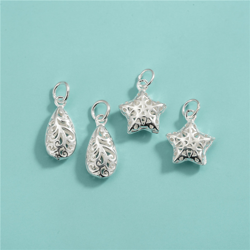 S925純銀素銀民族風模様水滴ペンダント雪花五角星ペンダントDIY水晶手串ペンダント
