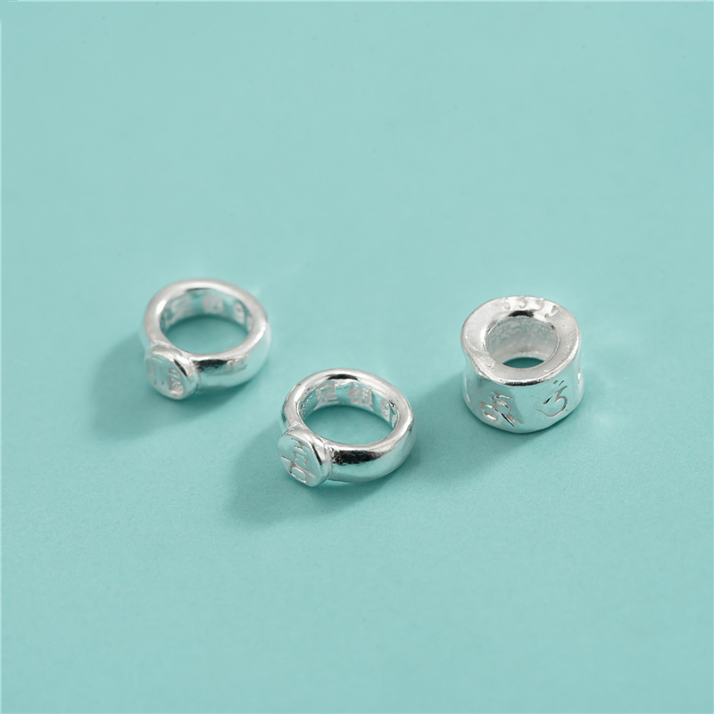 S999足銀隔珠福字喜字BB戒数珠DIY編み縄ブレスレット手串六字真言散珠部品
