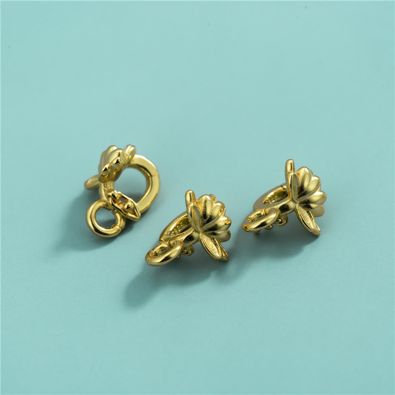 S925 スターリングシルバー電気メッキゴールド蓮の花ペンダントバックル DIY クリスタルネックレスパール鎖骨チェーン蓮の花接続バックル