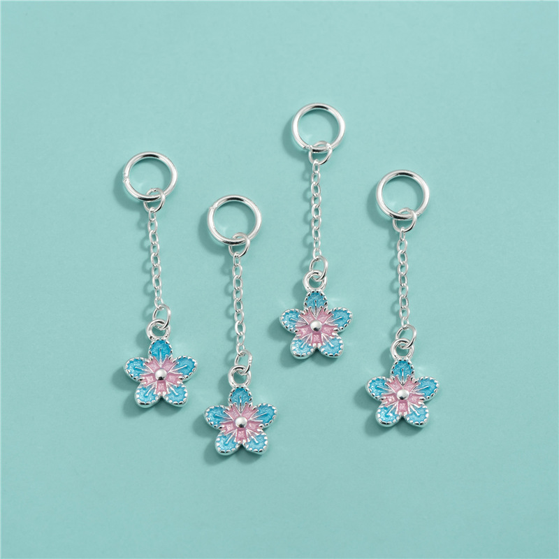 S925純銀メッキ精工滴ゴム部品桜掛けチェーン付き小花ペンダントDIYブレスレットペンダント