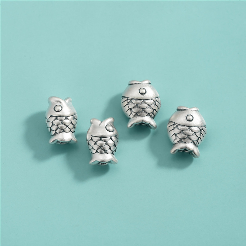 S999足銀3d小魚隔珠錦鯉上陸手縄部品DIYビーズ水晶真珠ブレスレット散珠