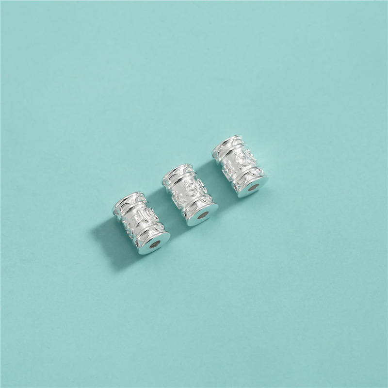 S925 スターリングシルバー電気メッキシルバーアクセサリー中国風 6 文字マントラビーズバケツビーズ DIY ブレスレットネックレスルースビーズ