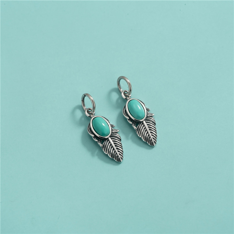 S925 スターリングシルバータイシルバーターコイズフェザーペンダント DIY 手作りロープブレスレットクリスタルパールブレスレットネックレスペンダント