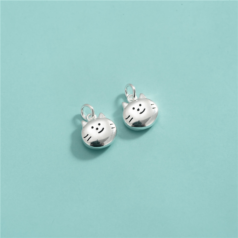 S925 スターリングシルバー電気メッキセイコーアクセサリーかわいい漫画猫ペンダント DIY クリスタル瑪瑙真珠ブレスレットペンダント