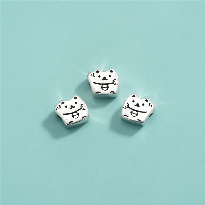 新年アクセサリー S925 スターリングシルバー電気メッキ招き猫ビーズ DIY 手作りビーズクリスタルパールブレスレットルースビーズ