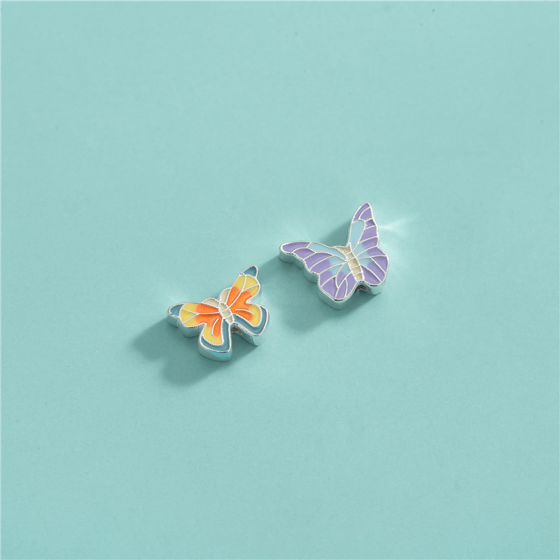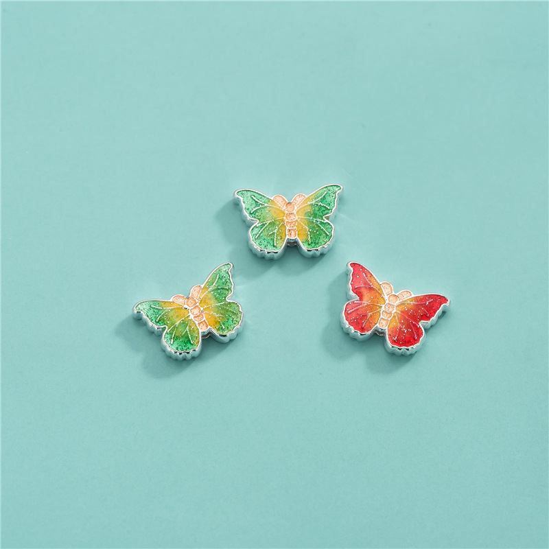 S925純銀滴ゴム赤緑両面蝶ビーズDIYビーズ水晶手串真珠ネックレスビーズ