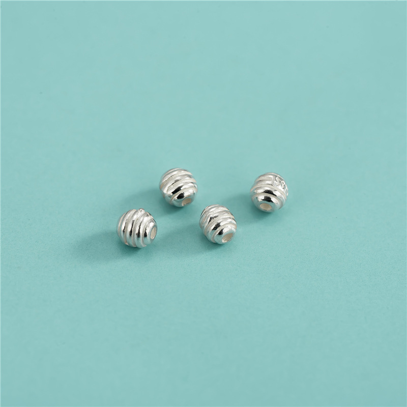 S925純銀素銀ねじ小隔珠縞散珠DIY手作りビーズ水晶真珠手串部品