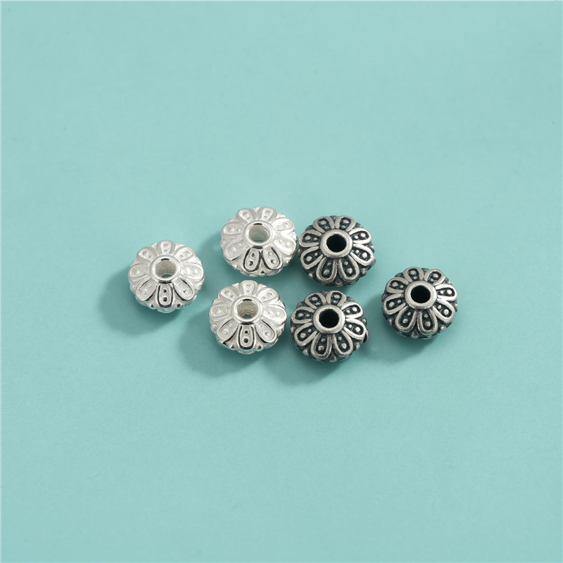 S925純銀レトロ花びらスペーサーDIY手作り編み紐水晶真珠手串ビーズアクセサリー