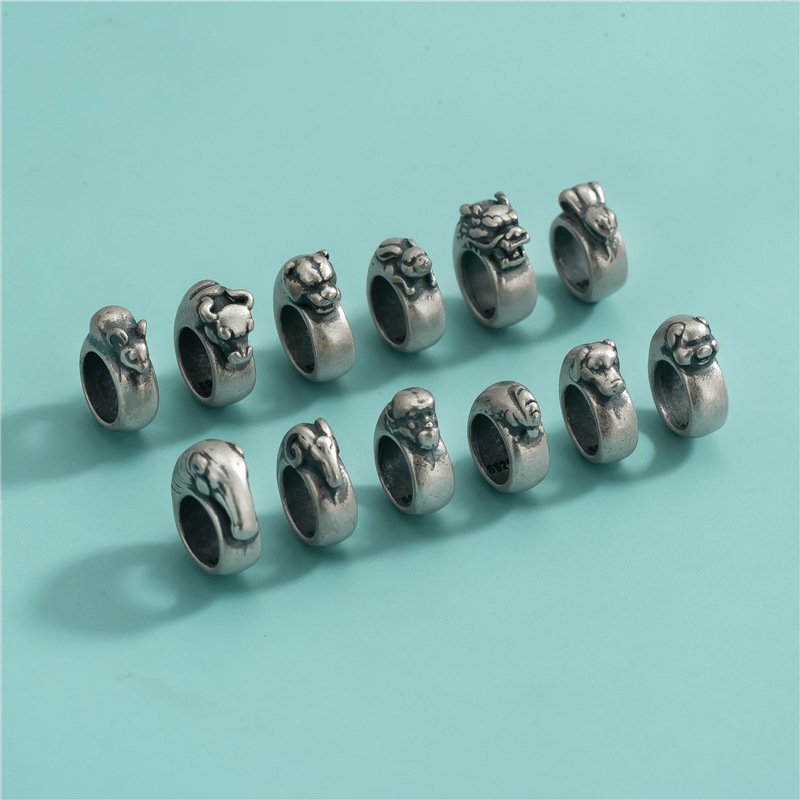 S925純銀レトロチベット式部品十二生肖隔珠散珠DIY編み縄ブレスレット手縄ビーズアクセサリー