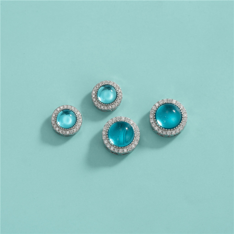 S925純銀のダイヤモンドジルコン隔珠海藍宝円形ビーズDIY水晶ブレスレット真珠鎖骨チェーン部品