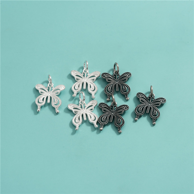 S925 スターリングシルバー中空蝶ペンダント中国風のネックレスペンダント DIY 編組ロープブレスレットパールブレスレットアクセサリー