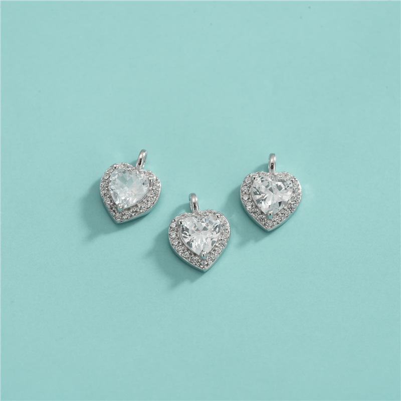 S925 スターリングシルバーダイヤモンドジルコンピーチハートペンダントシングルペンダント DIY 手作りビーズクリスタルパールネックレスペンダントアクセサリー