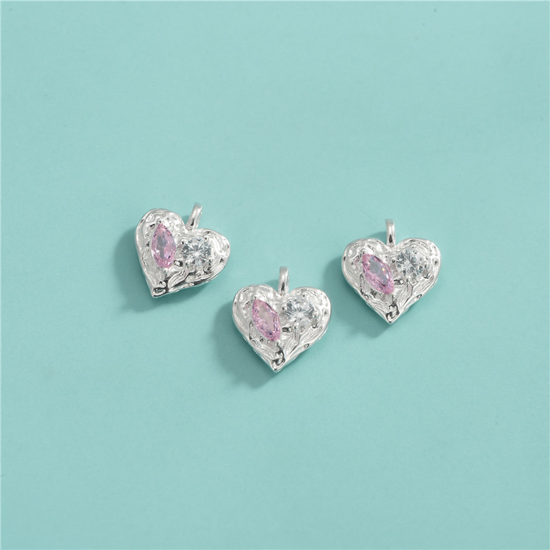 Ins風韓版筋理感桃心ペンダントS925純銀粉ドリル愛ペンダントDIY真珠鎖骨チェーン部品