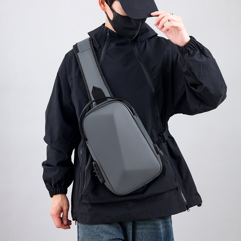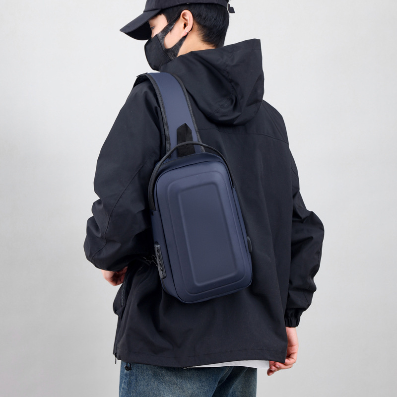 2024新型胸カバン男性リュックサックビジネスシングルカバンハードシェルタブレットカバン防水旅行斜め掛けカバン