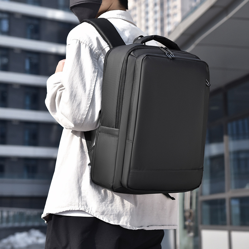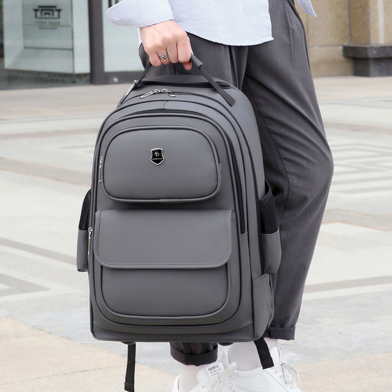拡張可能なノートパソコンのバックパック男性黒色多機能大容量手提げビジネスバッググレー