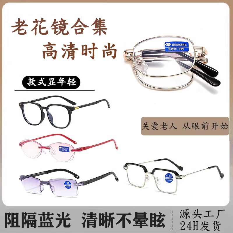 2024新型フラッシュサイドにブルーレイ防止老眼鏡女性快適高精細老眼鏡優雅ファッション若々しい