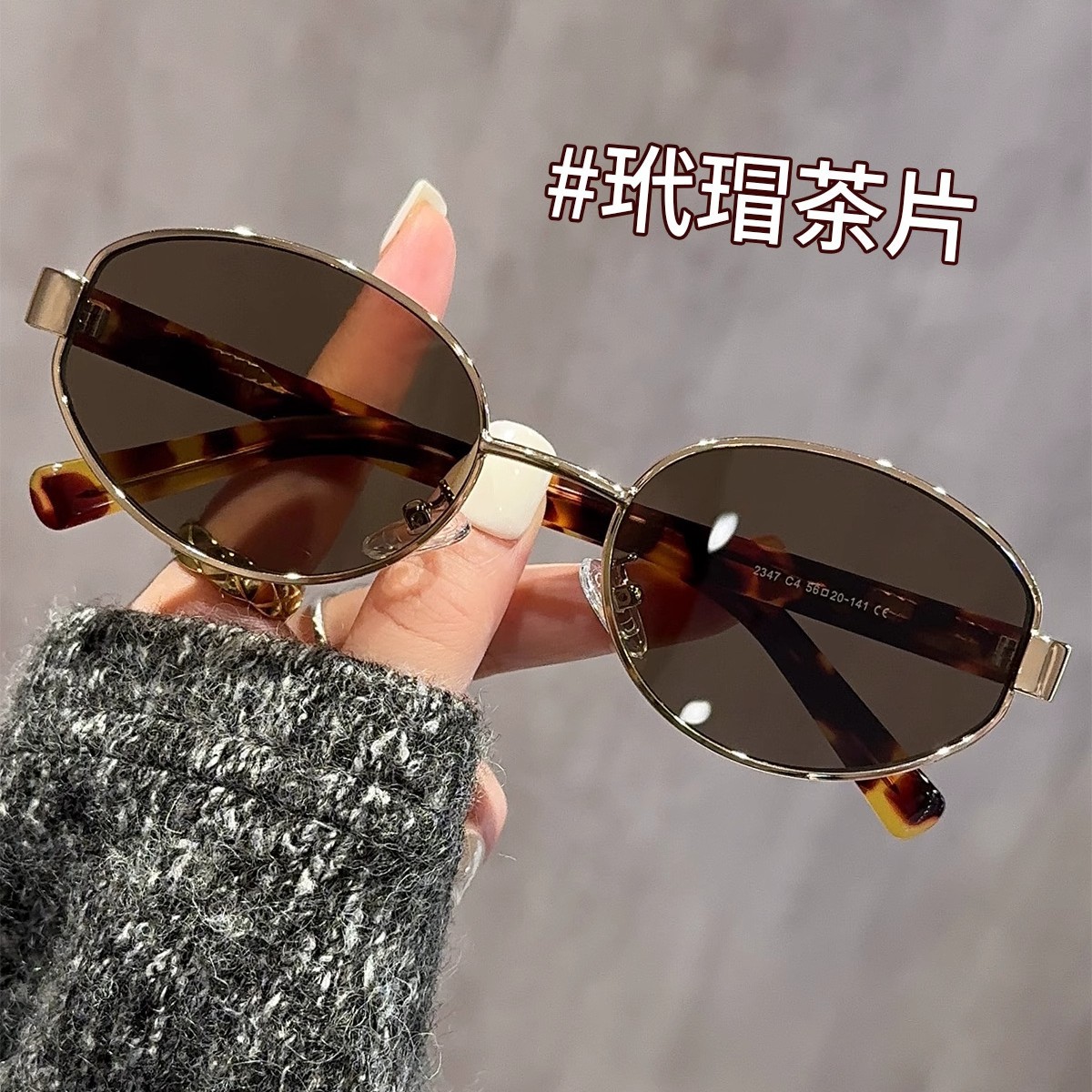 2025新型レトロ韓系べっこうサングラス女性高級感日焼け止め紫外線運転楕円形サングラス