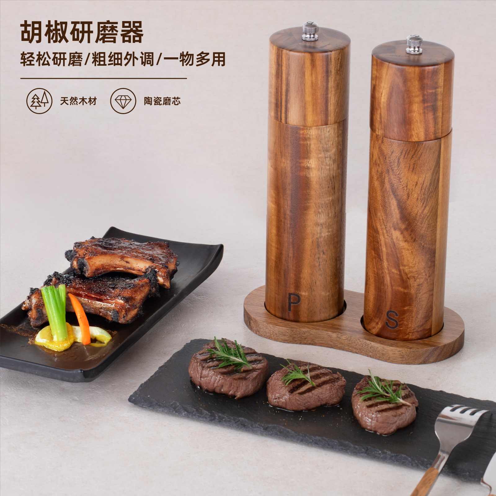 クロスボーダー現物アカシア木胡椒研磨器セラミック芯手動胡椒研磨器BBQバーベキューツールセット