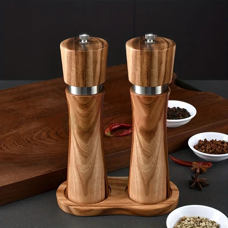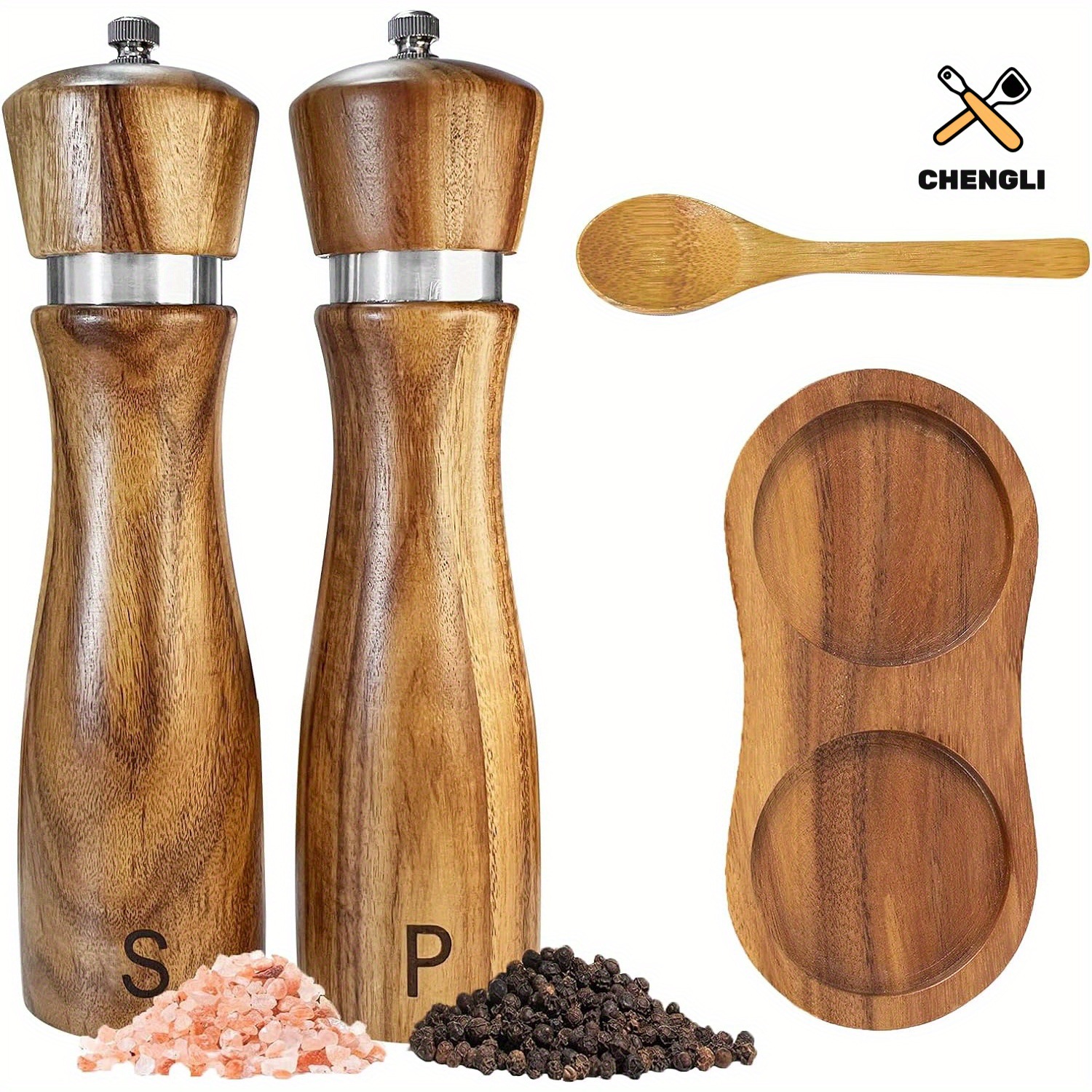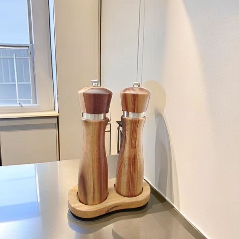 国境を越えた現物胡椒研磨器セットアカシア木手動海塩胡椒研黒胡椒サンショウ調味瓶