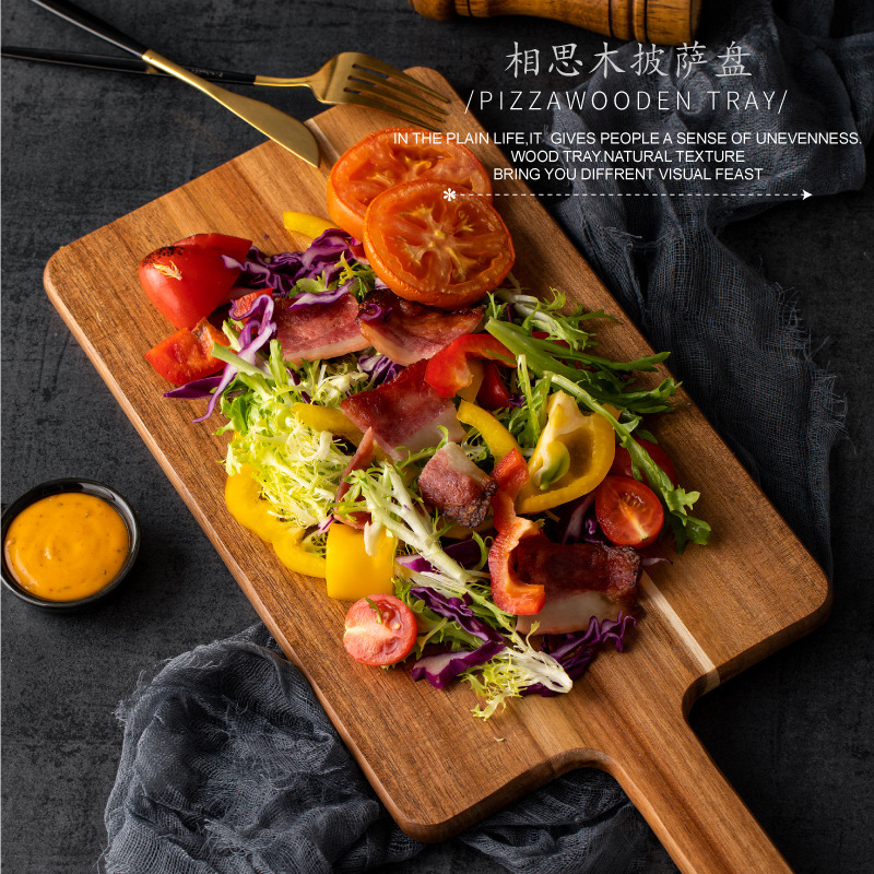 実木ピザ板木トレー洋食カットデザート板パン板ステーキトレー寿司鍋置き木皿