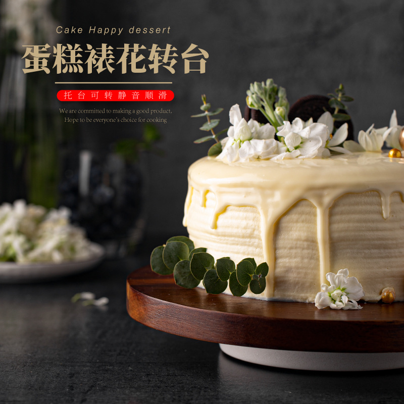 ケーキ表装ターンテーブル回転可能ケーキトレイ実木菓子皿誕生日ケーキ台焙煎ツールセット